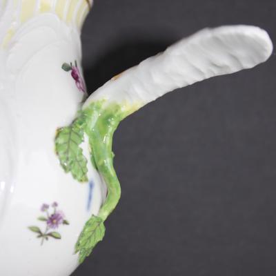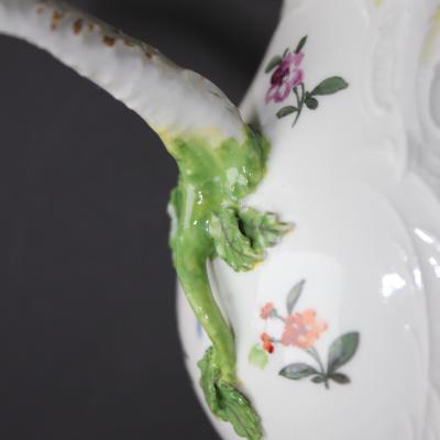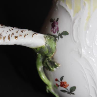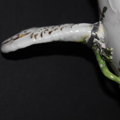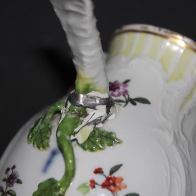 Dieses Kännchen war in früheren Zeiten mit Schellack Gips und Ölfarbe restauriert worden.