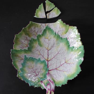 Diese drei Blattteller waren mit vergilbtem Klebstoff geklebt worden.